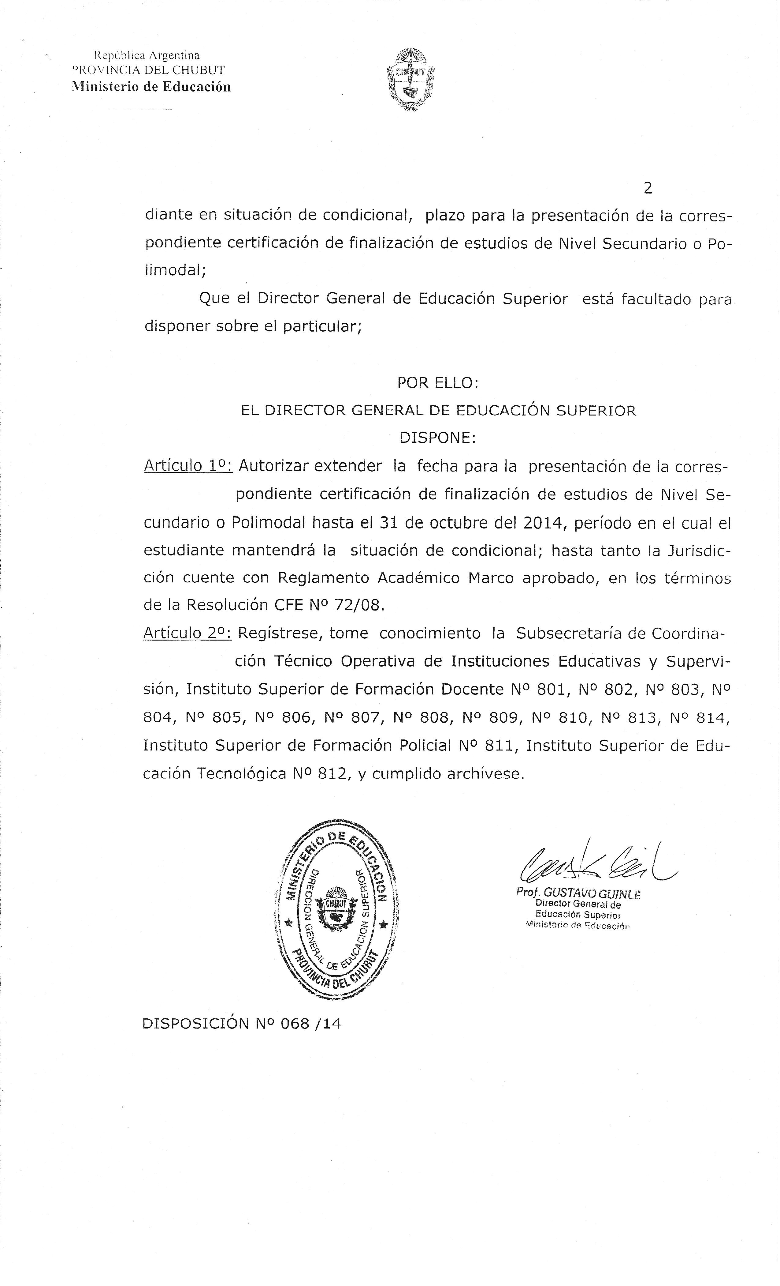 DGES_Nota Nº 018/2014. Disp. 068/14