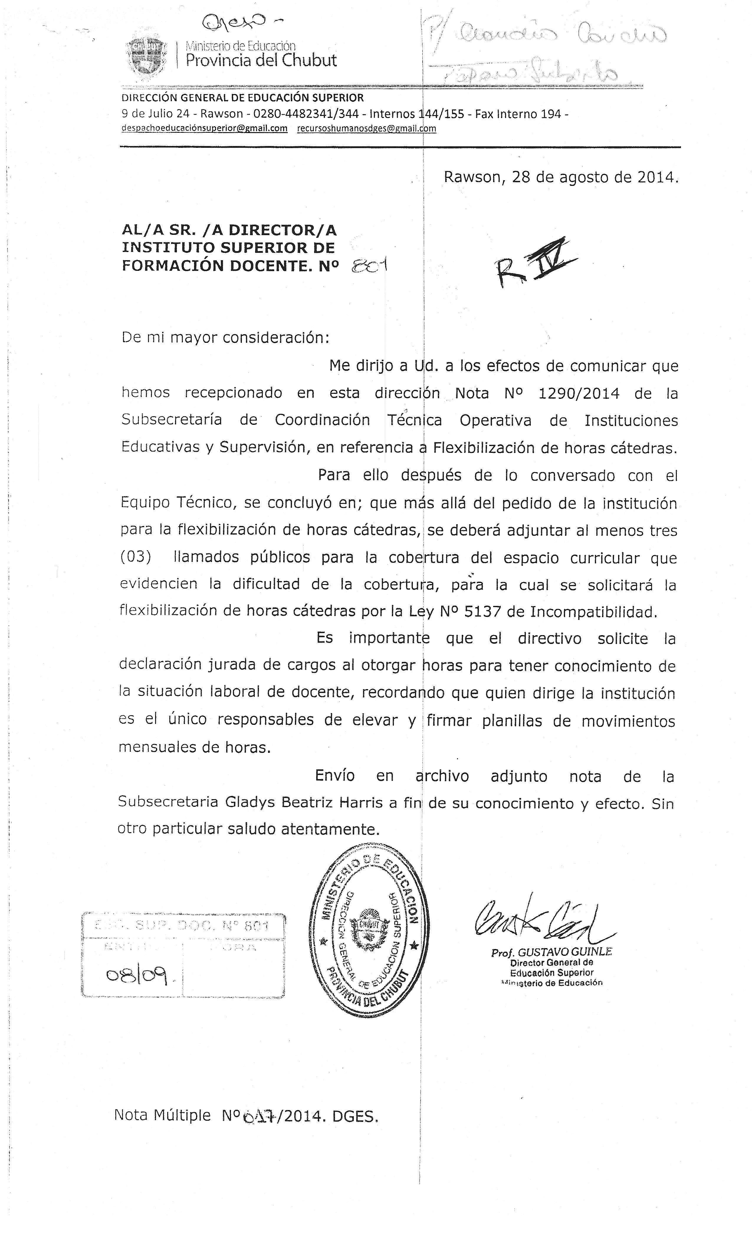 DGES_Nota Nº 017/2014. Fexibilización Horas Cátedras